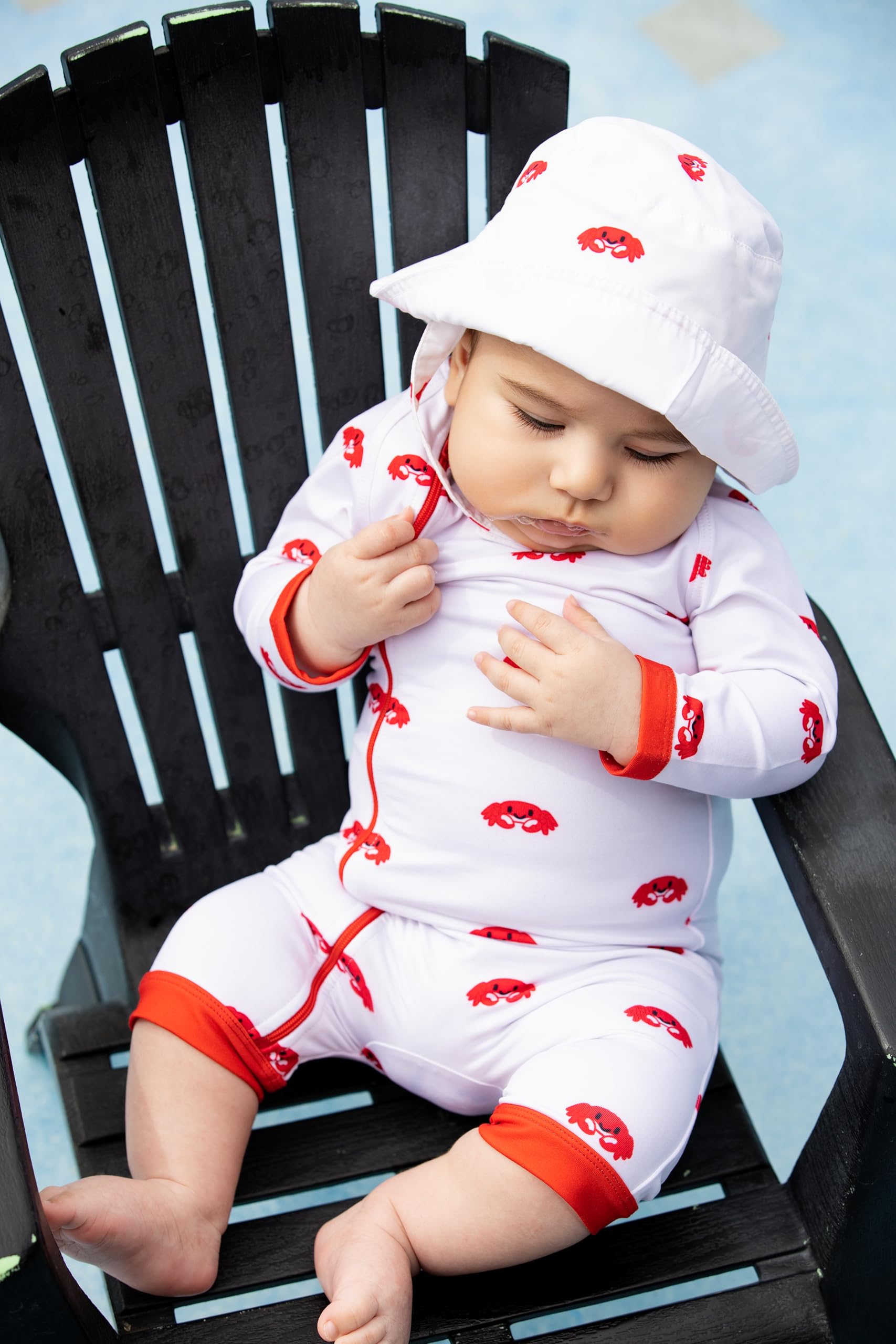 monica + andy Baby Long Rashguard One-Piece, Smiling Crabs, 3-6mā